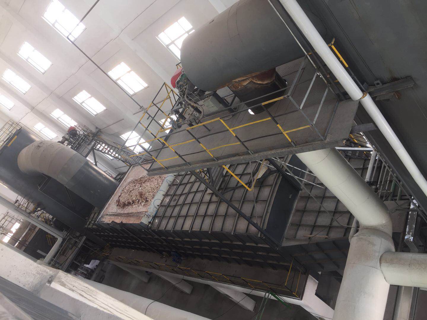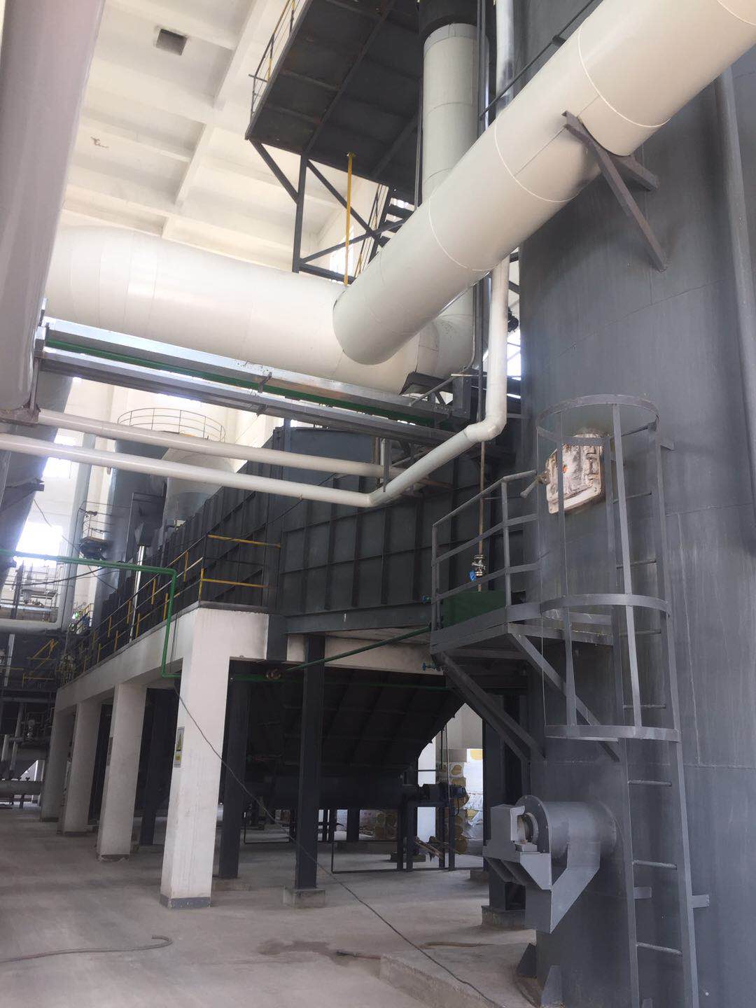經(jīng)過預(yù)處理的廢液、固廢或廢氣由進(jìn)料裝置進(jìn)入一次燃燒室,廢料與助燃空氣在焚燒爐爐膛內(nèi)經(jīng)過復(fù)雜的物理、化學(xué)反應(yīng),使廢料中的有害物質(zhì)徹底分解,焚燒溫度控制在750-800℃(不同的物料焚燒溫度不同);產(chǎn)生的煙道氣進(jìn)入迷宮沉降除塵器除鹽(底部自動(dòng)出鹽),然后進(jìn)入二級(jí)燃燒室進(jìn)行高溫焚燒,二級(jí)燃燒室內(nèi)焚燒溫度控制在1100℃左右,產(chǎn)生的高溫?zé)煹罋饨?jīng)SNCR脫硝后,進(jìn)入余熱回收裝置,高溫?zé)煹罋獾牟糠譄崃哭D(zhuǎn)化為蒸汽回收,煙氣溫度降至550℃左右,之后進(jìn)入G-G換熱器與煙氣再加熱器1的熱側(cè),為補(bǔ)燃空氣預(yù)熱和將布袋除塵器出來的煙氣再次升溫至脫硝所需溫度,同時(shí)煙氣降溫至500℃左右,(根據(jù)國(guó)標(biāo)要求:為避免二噁英的再次合成,煙氣要在1S內(nèi)從500℃左右降至200℃以下),煙氣進(jìn)入半干急冷塔降溫至200℃以下,經(jīng)布袋除塵后,煙氣經(jīng)煙氣再加熱器1加熱升溫至350℃左右,通過SCR脫硝,進(jìn)入煙氣再加熱器2熱側(cè)作為熱源加熱汽水分離后的煙道氣,之后進(jìn)入噴淋吸收塔脫除酸性氣體,且再次降溫至75℃左右,進(jìn)入汽水分離器脫水后,經(jīng)過煙氣再加熱器2的冷側(cè)被加熱至120℃左右經(jīng)煙囪外排。